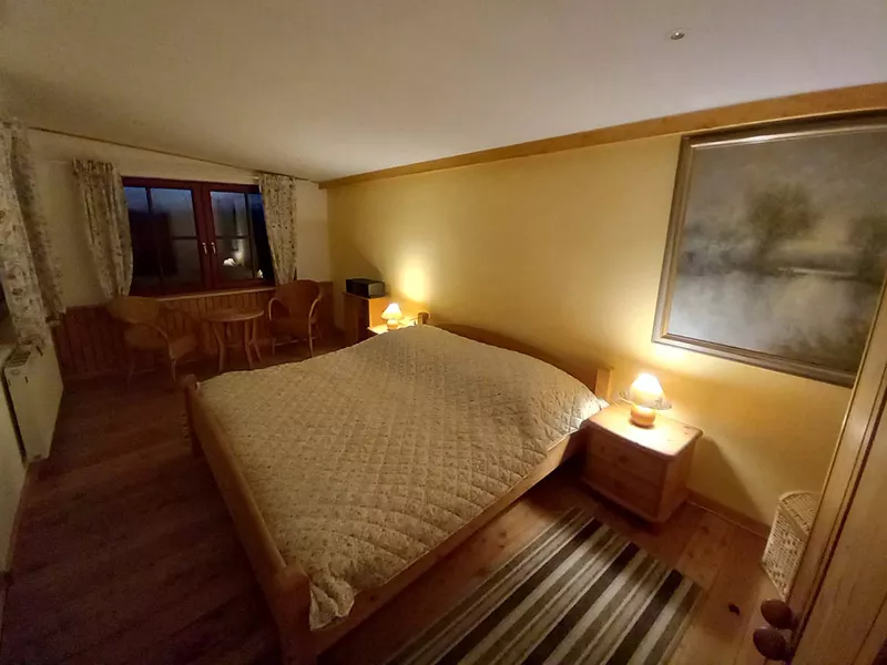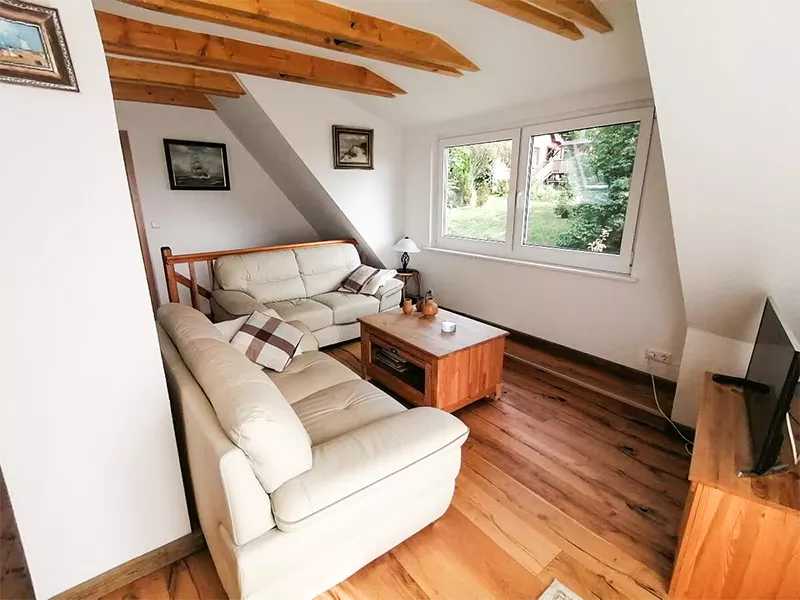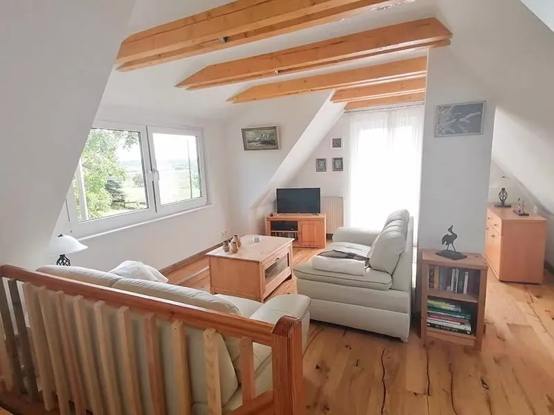 Im Obergeschoss ist das Wohnzimmer und das Schlafzimmer.
