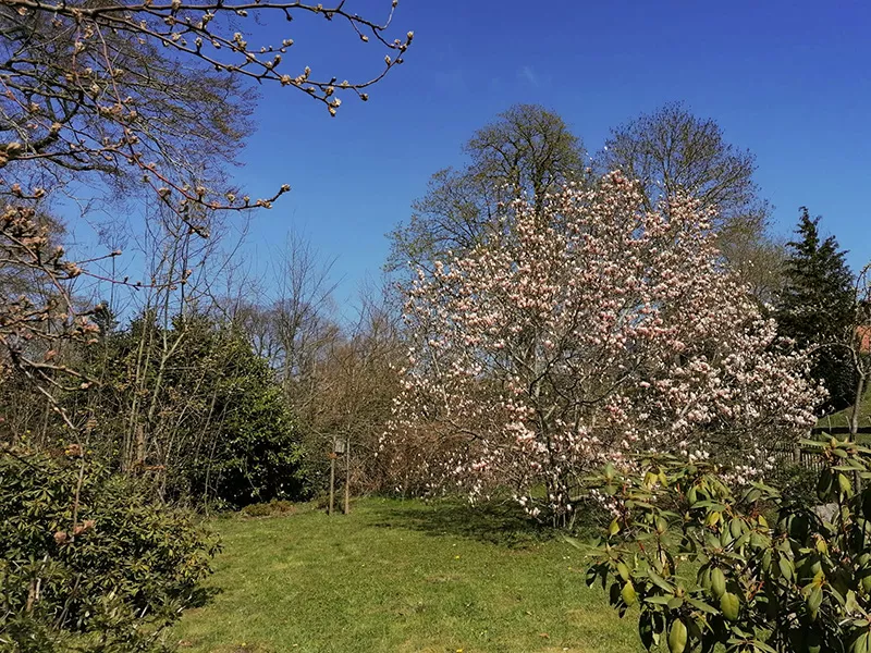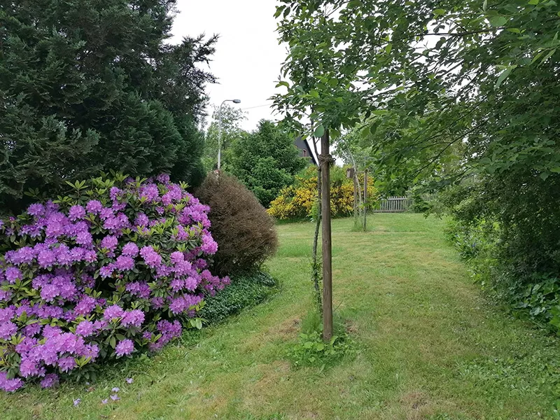 Das rundum eingezäunte, ca.1100 qm., Grundstück ist ideal für Ihren vierbeinigen Freund.